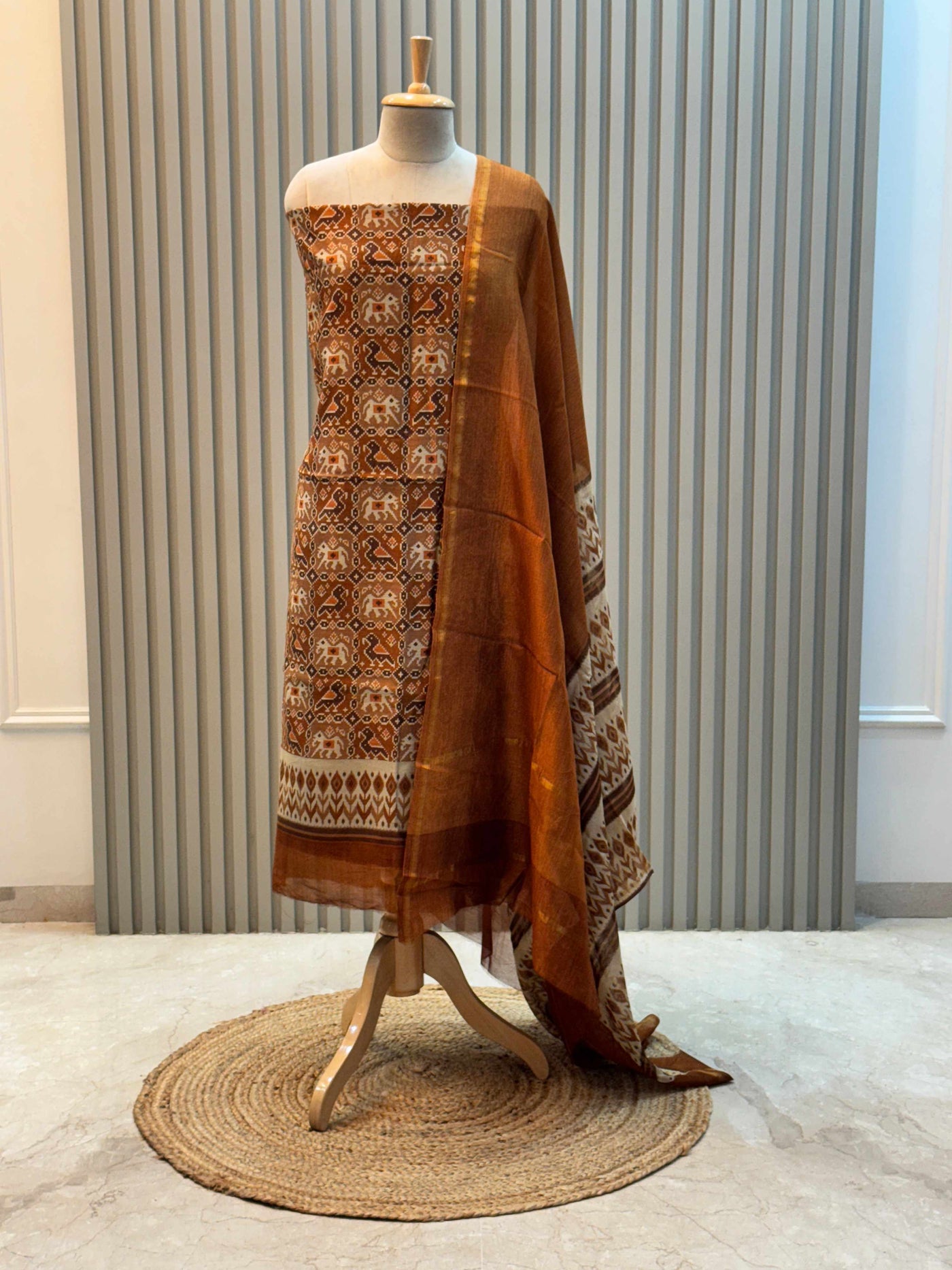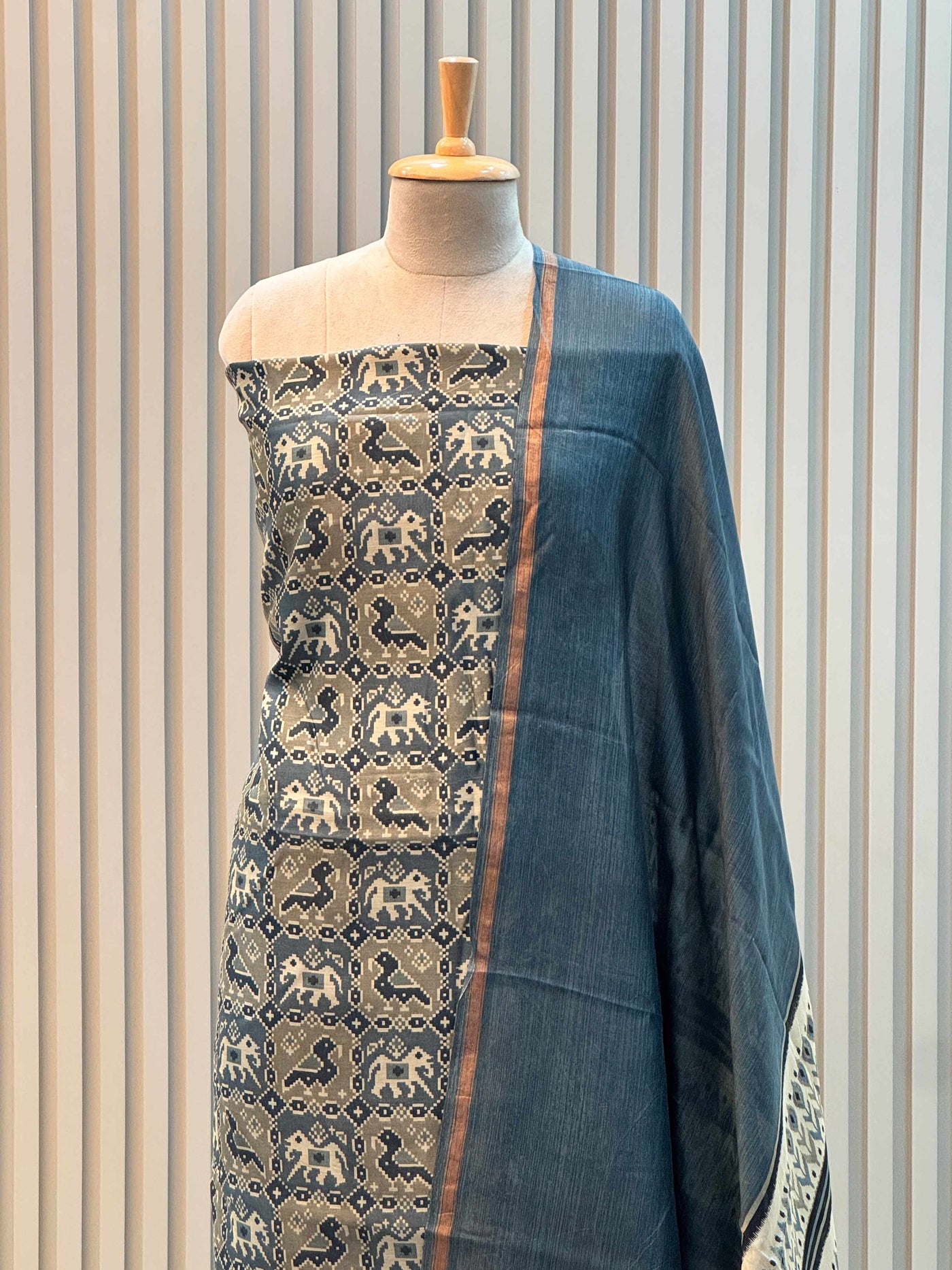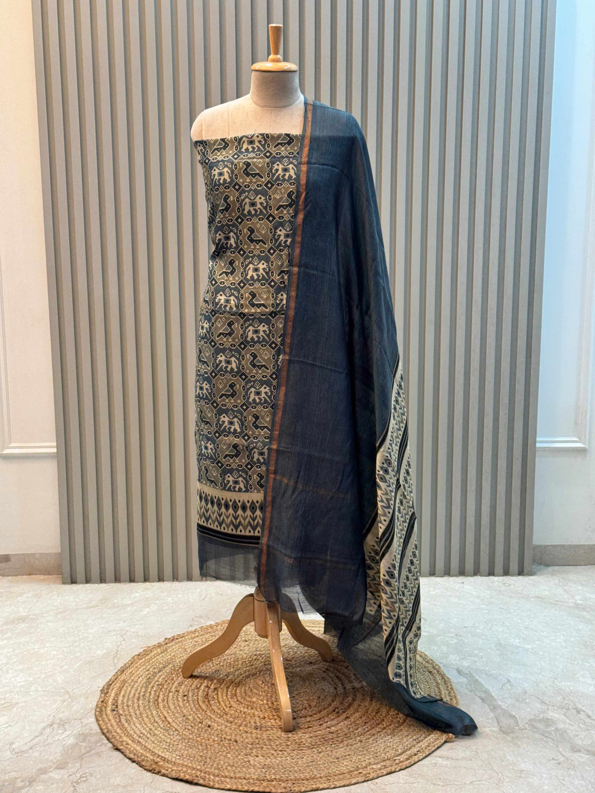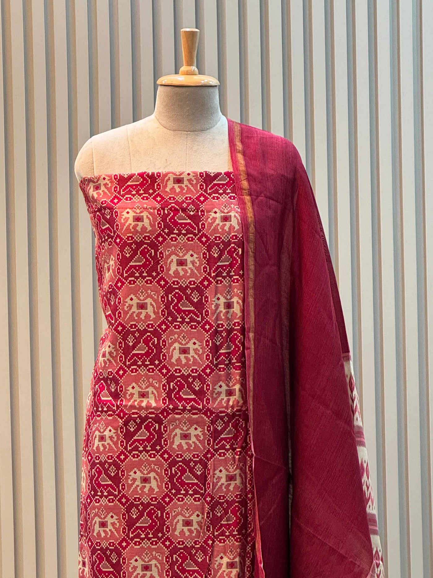 Elevate your ethnic wardrobe with this exquisite Pure Silk Maheshwari Suit, crafted to perfection for a luxurious feel and elegant drape. The suit features rich, vibrant colors that enhance its traditional charm, while the beautifully detailed Patola print adds a touch of timeless heritage. Soft, lightweight, and effortlessly graceful—this ensemble is perfect for festive occasions, parties, and special celebrations.