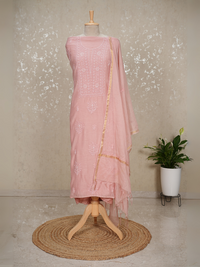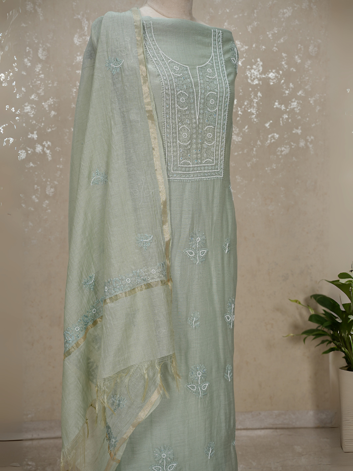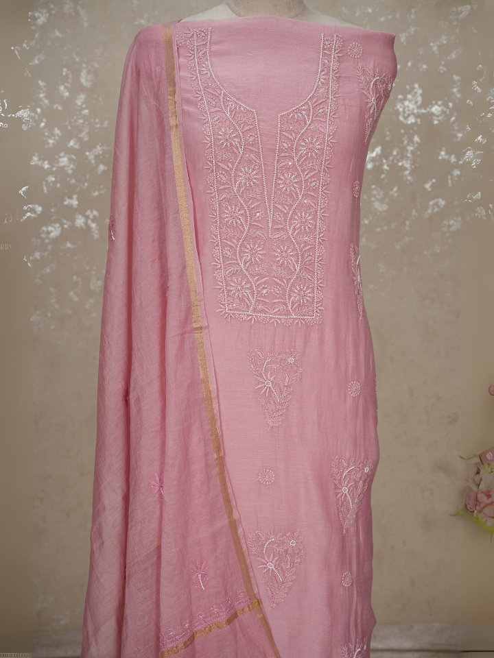 Chikankari Mul Chanderi Suit with Pearl & Sequin Embroidery