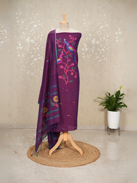 Experience timeless elegance with this pure Bengal cotton Jamdani handloom suit. This 2-piece set is crafted with exceptional artistry, showcasing traditional weaving techniques that reflect cultural heritage and fine craftsmanship.
