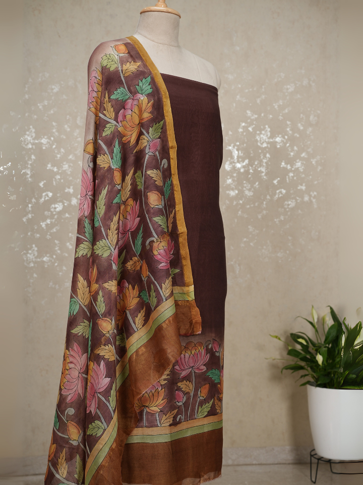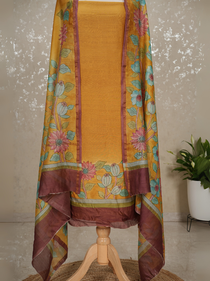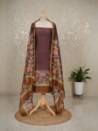 Elevate your ethnic wardrobe with this pure silk Maheshwari suit, a timeless blend of tradition and luxury. This 3-piece set includes a finely woven kurta, matching bottom, and a dupatta crafted from high-quality imported fabric, ensuring unmatched elegance and comfort. The suit features unique prints that reflect classic artistry with a modern touch, making it perfect for festive occasions, weddings, or sophisticated gatherings.
